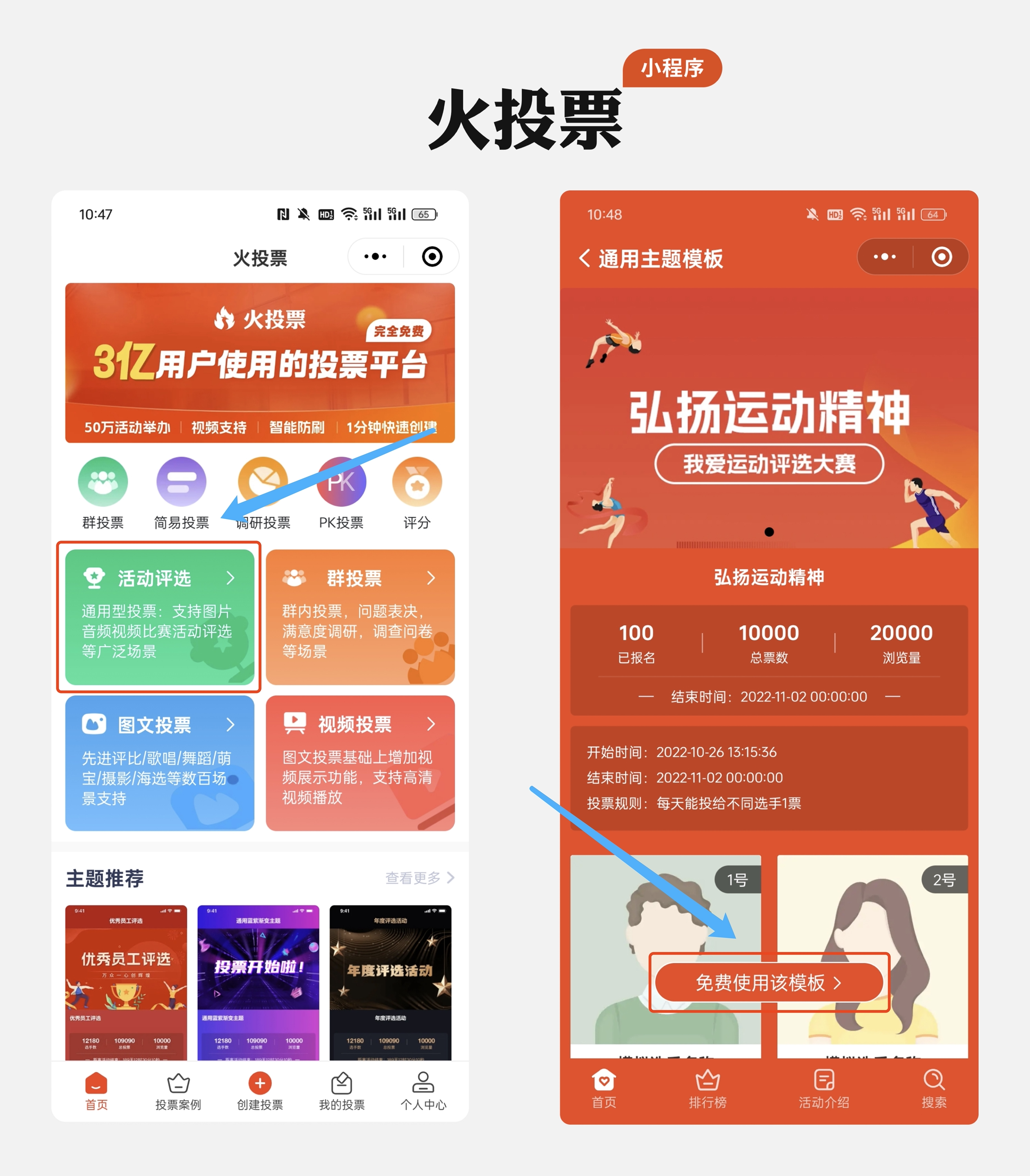 投票加加一亮相,就凭借清新简洁的 UI 设计吸引了众多用户的目光,对于新手来说,简直就是福音。在这个小程序里创建投票,就像搭积木一样简单,总共只需 3 步:第一步,从丰富的模板库中挑选适合的模板,无论是时尚的艺术展览投票,还是充满活力的运动赛事投票,都能找到契合的模板;第二步,填写活动相关信息,包括活动名称、时间、投票规则等;第三步,点击发布,投票活动就大功告成了,全程傻瓜式操作,轻松上手。