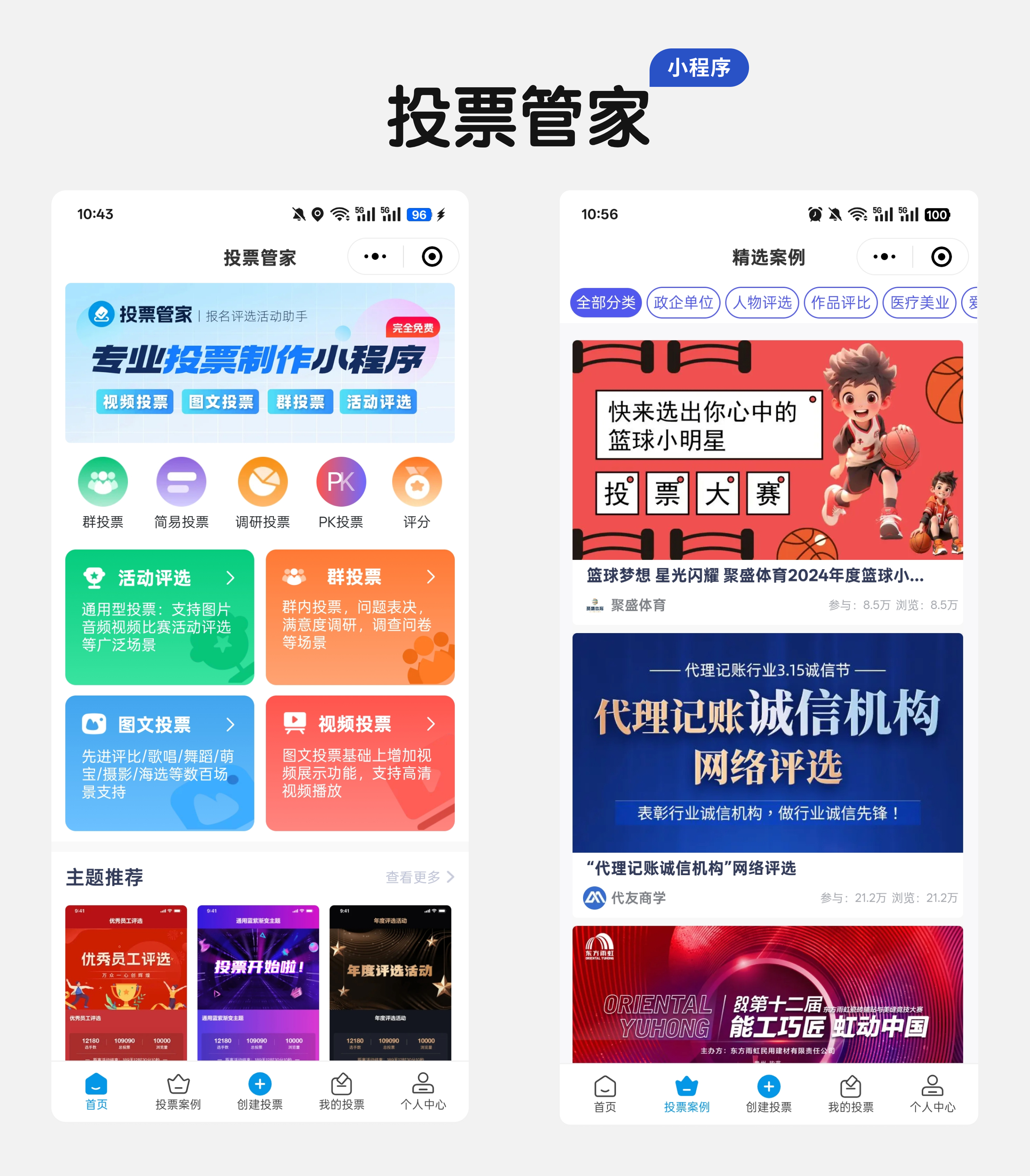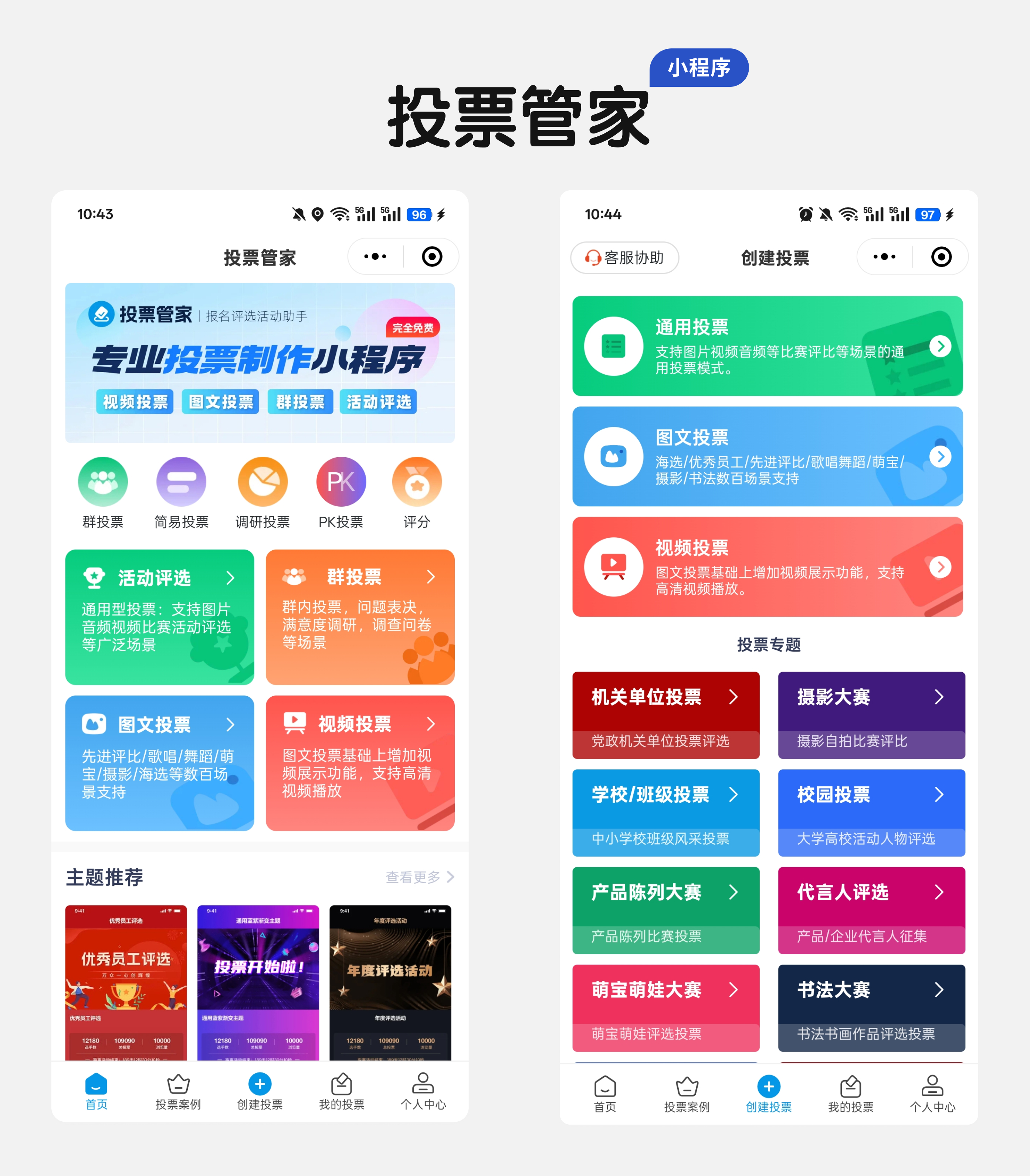 进入主界面后,点击 “创建投票” 或 “活动评选” 按钮,两种方式任选: