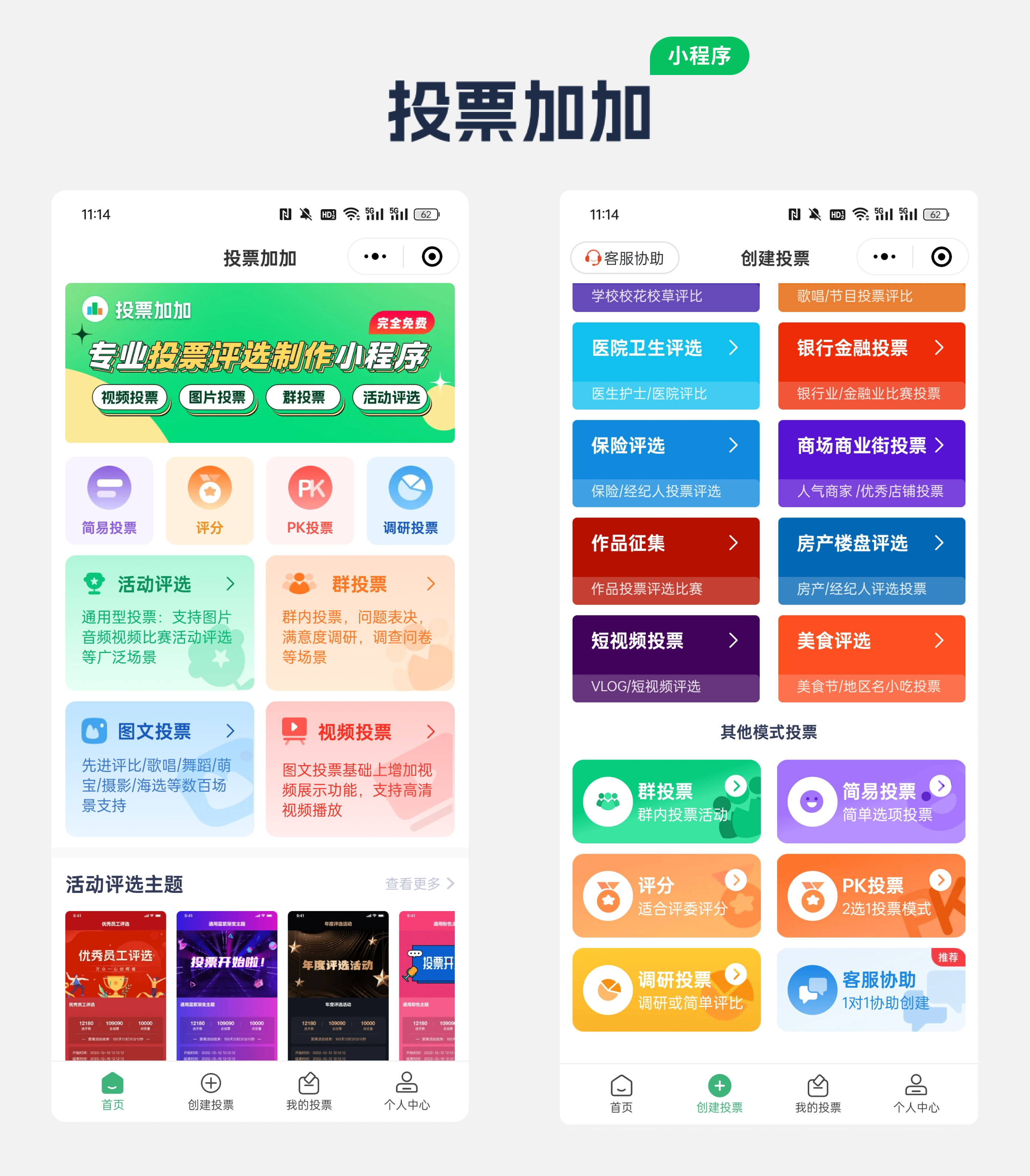 投票加加以“专业模板+深度定制”为特色,覆盖赛事评选、绩效评分、调研问卷等20余种场景,支持选手自主报名、批量导入数据、数据大屏实时展示,成为大型活动的首选工具。